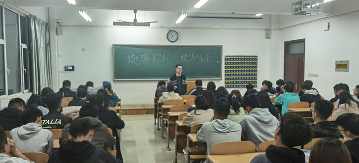 为充分发挥校园廉洁文化的教育示范作用,帮助广大师生树立廉荣贪耻的意识,11月15日晚,伟德国际bevictor1946在各班会教室召开“读廉政经典,谈清风正气”主题班会,各班主任主持班会。
