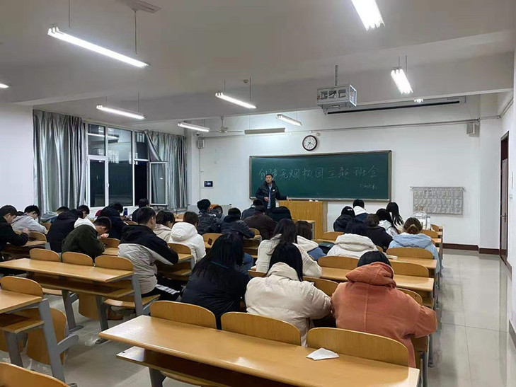 11月22日晚,伟德国际bevictor1946在各班会教室召开“创建无烟校园,健康快乐成长”主题教育班会,各班班主任主持,全体在校生参加了班会。
