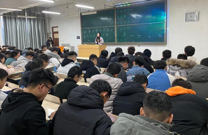进一步做好老员工兵役登记和应征入伍工作,伟德国际bevictor1946于12月19日下午在工科楼2-112教室举行老员工兵役登记及征兵工作宣讲会,辅导员宫欣主持会议,全体2020级员工参加了宣讲会。