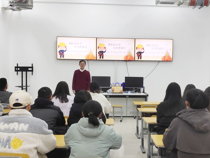 班会上,班主任老师结合学校下发的《关于开展“冬季防火月”活动的通知》要求,重点结合高校典型火灾尤其是宿舍区火灾实例,讲解了火灾的危害性,带领同学们学习了如何预防火灾、报火警、扑救初起火灾、火场自救逃生等方面的消防知识。同学们集中观看了《校园安全山东省消防安全警示片》,视频以触目惊心、惨不忍睹的火场再现,教育并警示同学们火灾事故的严重危害性,提醒同学们要时刻关注校园消防安全。班主任老师希望班长、宿舍长切实承担起班级、宿舍消防安全责任,积极配合学院对标对表做好消防安全隐患排查工作,对发现的问题要立行立改,切实做好消防安全宣传工作,提高同学们关注消防、筑牢安全防线的意识。