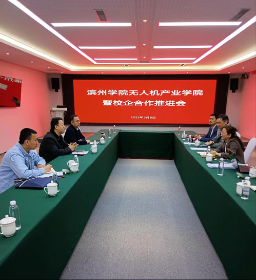 在济南华恒兴通信科技有限公司,陈经理与公司董事长张艳就产业学院建设中存在的问题进行了深入交流,双方围无人机产业人才培养的需求、规划、思路等方面进行了深入探讨,同时也探讨了下一步产业学院的发展方向。