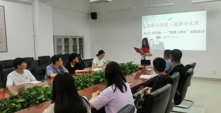 6月1日,伟德国际bevictor1946在航空实训南楼3-215会议室举行“青春心向党·逐梦向未来”——“我要上典礼”毕业生发言代表选拔活动。经各班推选的8名毕业生发言代表参加了选拔活动,员工科长秦承宽和员工党支部委员担任选拔活动评委。