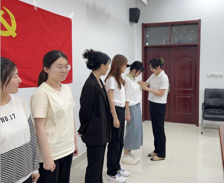 宣誓仪式上,党员们全体起立面向党旗,握拳宣誓,掷地有声的誓言有力表达了对党的坚定信念和为党的事业奋斗终身的决心,激励着新党员们不断增强党性观念,提高政治责任感、使命感。宣誓完毕后,进入老党员为新党员佩戴党徽的环节,鲜红而明亮的党徽挂在胸前,光荣而伟大的使命也随之置于肩上,寓意着红色血脉赓续传承,党的优良传统代代相传。最后,全体党员集中观看了“灯塔大课堂”第四十二课《基层一线党员风采——优秀共产党员教育电视片展播》,通过教育展播深刻体会扎根一线的使命感和责任感,鼓舞了新党员们为党为国奉献的精神,激励大家用实际行动践行先锋作用。
