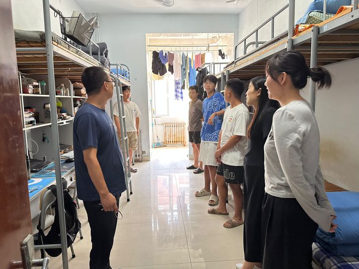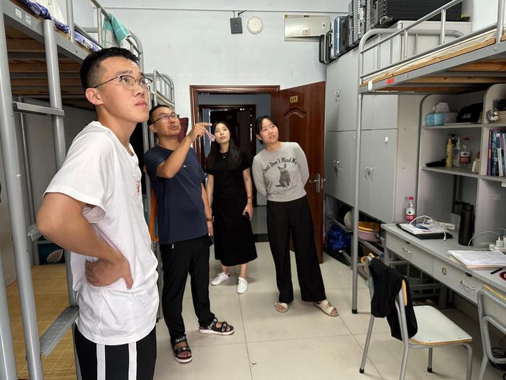 此次排查重点包括用电安全隐患、消防安全隐患、门窗安全隐患、卫生安全隐患、床铺安全隐患等方面,重点检查是否存在使用违规电器和劣质电源插排、私接乱拉电线、宿舍内吸烟或使用明火、存放各类管制刀具、饲养宠物、门窗门锁损坏、床铺是否牢固等。走访期间,王泰宁亲切的询问了员工暑假见闻、新学期目标计划和复习备考情况,以及对宿舍管理方面的意见和建议。王泰宁希望同学们一是严格遵守学校员工管理和公寓管理的相关规定,严禁使用违规违禁物品,增强安全意识,保持个人卫生及宿舍内整洁,营造更加安全健康良好的学习生活环境;二是就宿舍搬迁事宜进行了动员和教育,叮嘱同学们要充分理解宿舍调整的背景和原则,搬迁过程中注意人身和财产安全,安全顺利高效完成宿舍搬迁;三是勉励同学们新学期继续努力,做好学业规划,不断丰富宿舍文化生活,以良好的精神面貌开启新学期新征程。