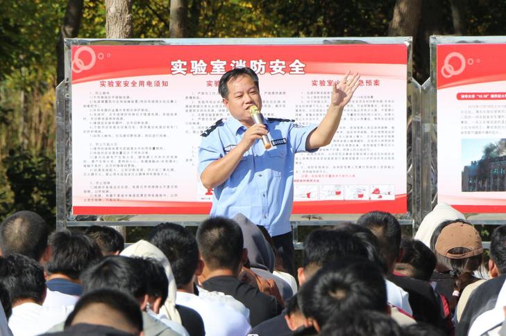 培训中,杨玉杰老师结合集团消防安全的实际情况,具体介绍了校园火灾事故发生的原因和严重危害,并就如何预防校园火灾,围绕消防安全“三懂三会”,即懂火灾的危险性、懂火灾预防措施、懂扑灭初期火灾的方法,会报警、会使用消防器材、会扑救初期火灾,进行了专题讲解和培训;杨玉杰老师希望同学们通过培训进一步提升消防安全“四个能力”,即检查排除火灾隐患的能力、扑救初期火灾的能力、组织疏散逃生的能力、宣传教育培训的能力,他希望同学们成为校园消防安全的关注者、责任者和参与者。同时,杨玉杰老师围绕同学们在学校生活中面临的消防安全问题,结合实验室安全、教学楼安全、图书馆安全、餐厅安全及员工宿舍安全做了一一讲解,进行了消防安全知识普及,开展了消防安全技能培训。