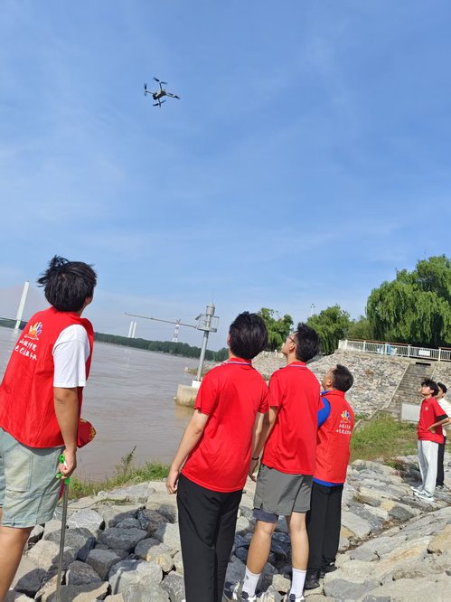 活动当天,“渤海之翼”志愿服务队携带自主改装的水样采集无人机抵达黄河畔。队员们沿黄河流域规划7个采样点,各点位间隔约10公里,覆盖不同流速、深度及周边环境的水域。随着无人机一次次腾空而起,穿越河面,采集装置缓缓浸入水中,精准提取水样,整个过程流畅高效。后续,实践团队也将对采集的水样进行酸碱度、重金属含量等多项指标检测分析,为黄河水质研究提供数据支撑。在采样工作间隙,队员们转换身份,化身“黄河卫士”,手持垃圾袋与工具钳,沿着黄河堤岸仔细捡拾塑料瓶、包装袋等废弃物,用实际行动守护母亲河的洁净。